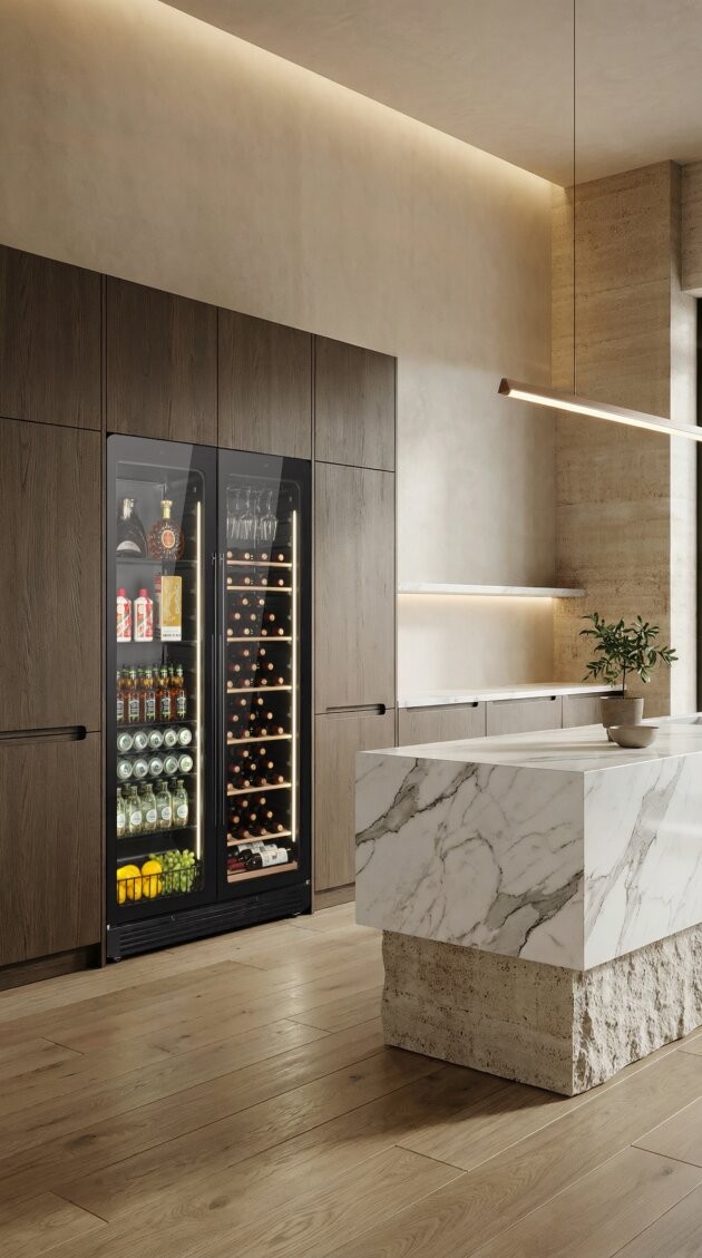 无论是厨房的嵌入式橱柜、客厅的餐边柜、茶室的收纳柜,还是地下室的专属酒窖、休闲区的角落布局,都能轻松嵌入,不浪费每一寸定制空间,让空间布局更规整、动线更流畅。